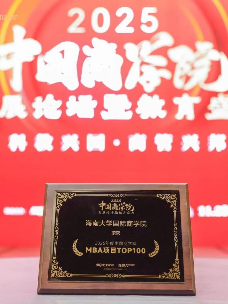 喜报!海南大学MBA荣登2025年度中国商学院MBA项目TOP100榜单第62位