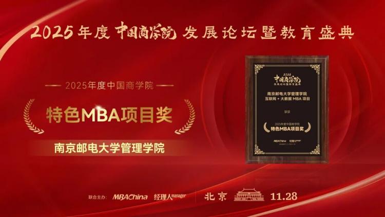 TOP100 & 特色MBA项目奖 | 南邮互联网+大数据MBA项目荣获“2025年度中国商学院MBA项目系列榜单”多项大奖