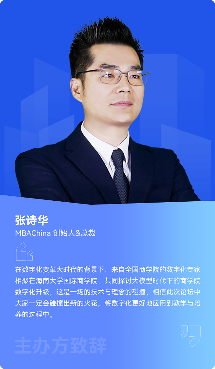 10月26日-28日,第十二届商学院数字化论坛“大模型时代下的数字化升级”于海南海口顺利举办。聚焦大模型时代前沿研究分享重要议题,共同探讨数字化升级的未来之路。本次论坛由MBAChina主办,海南大学国际商学院承办。来自清华、复旦、上交、南开、长江、中欧等全国50余所商学院100余位领导、技术专家、老师参加论坛并交流。